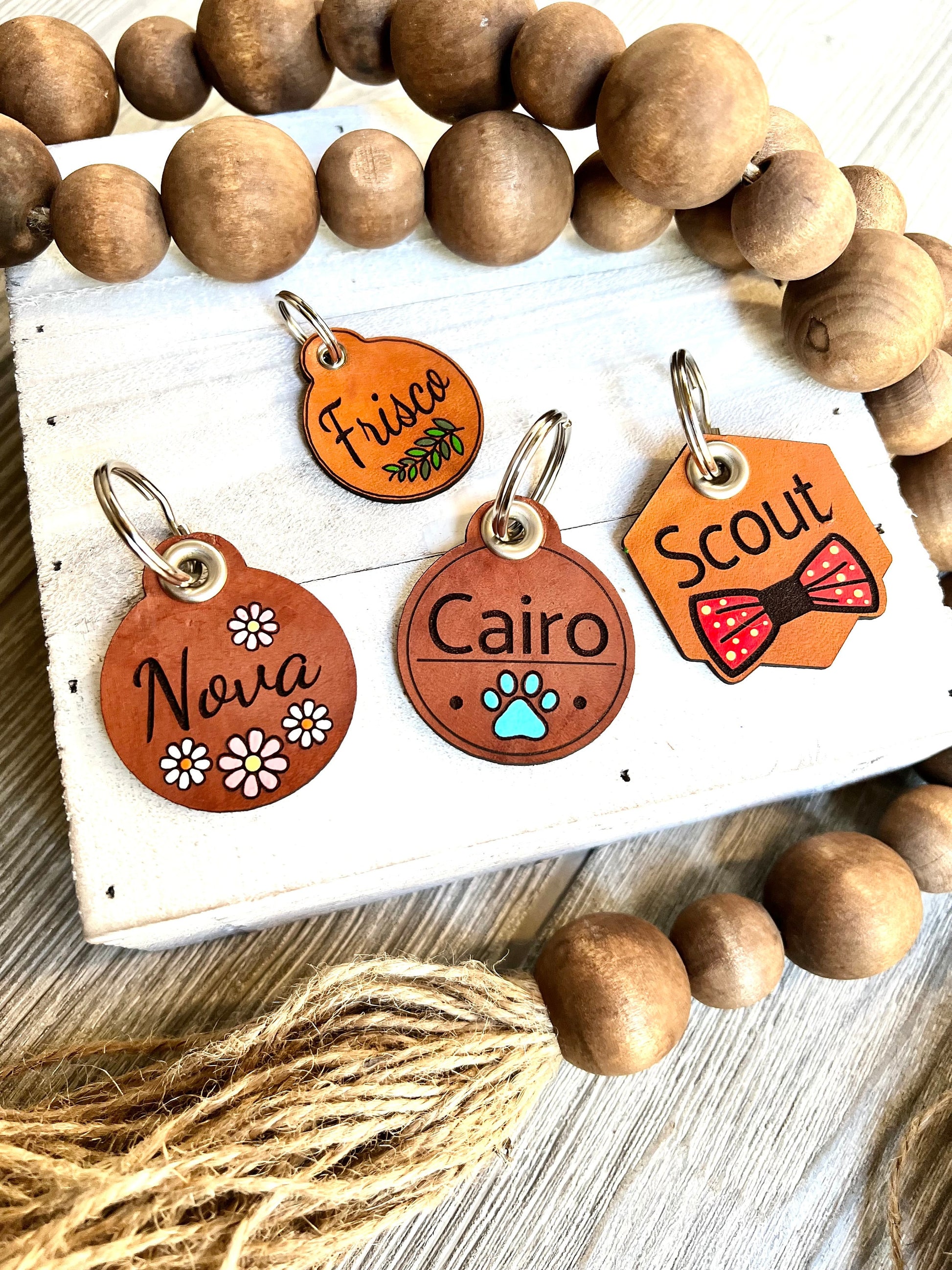 The leather is durable, lightweight and best of all quiet!! These tags can also help dampen the noise created by other tags your pet wears.