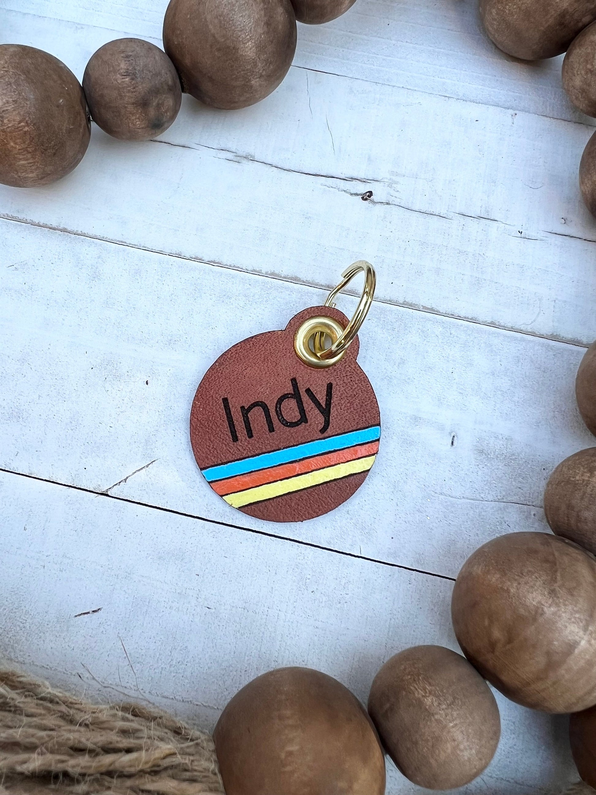 Leather Dog ID Collar Tags - Indy-Style Stripe Tag