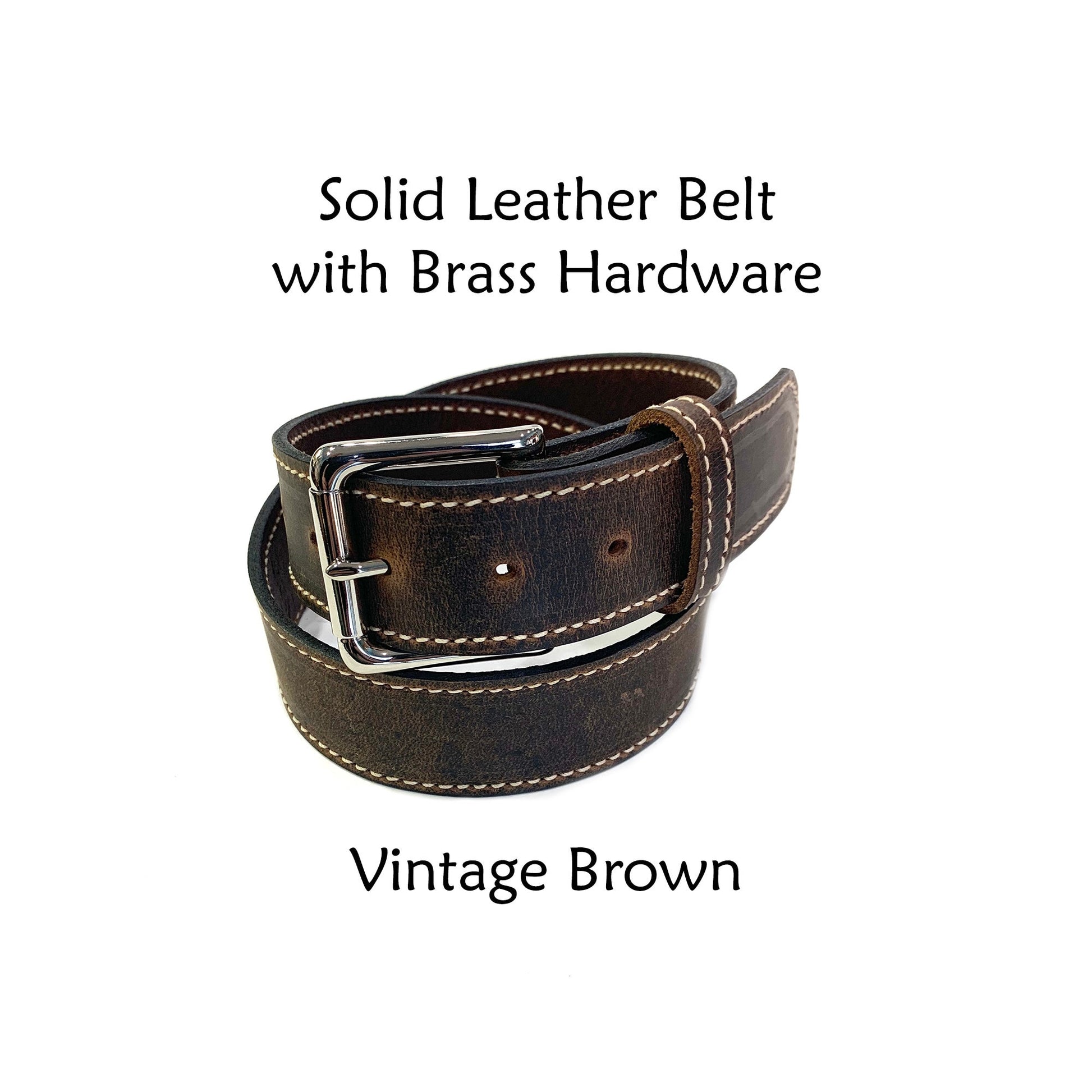 A vintage looking belt with classic appeal! The belts are made from solid, full grain leather and feature painted edges which gives them a crisp, clean look! Each belt comes with a solid brass buckle and Chicago screw posts which allow for easily changing buckles.